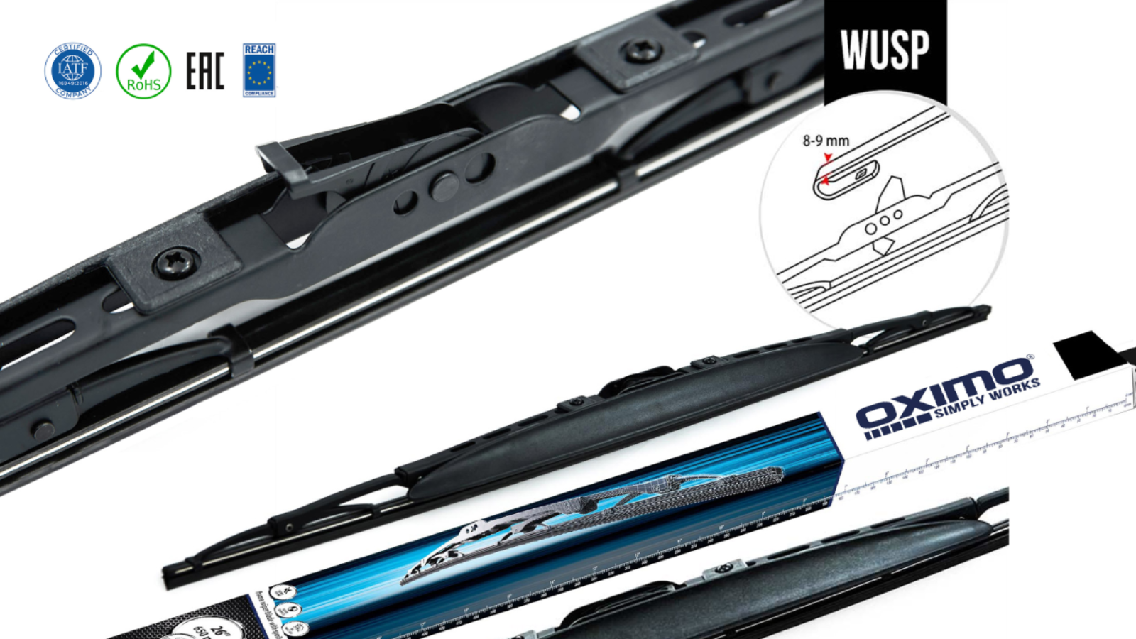 Серія Oximo WUSP створена для водіїв, які віддають перевагу перевіреній часом каркасній конструкції, але часто подорожують трасою. На відміну від звичайних моделей, ці щітки оснащені інтегрованим пластиковим спойлером, який використовує силу зустрічного потоку повітря для додаткової фіксації двірника на склі.